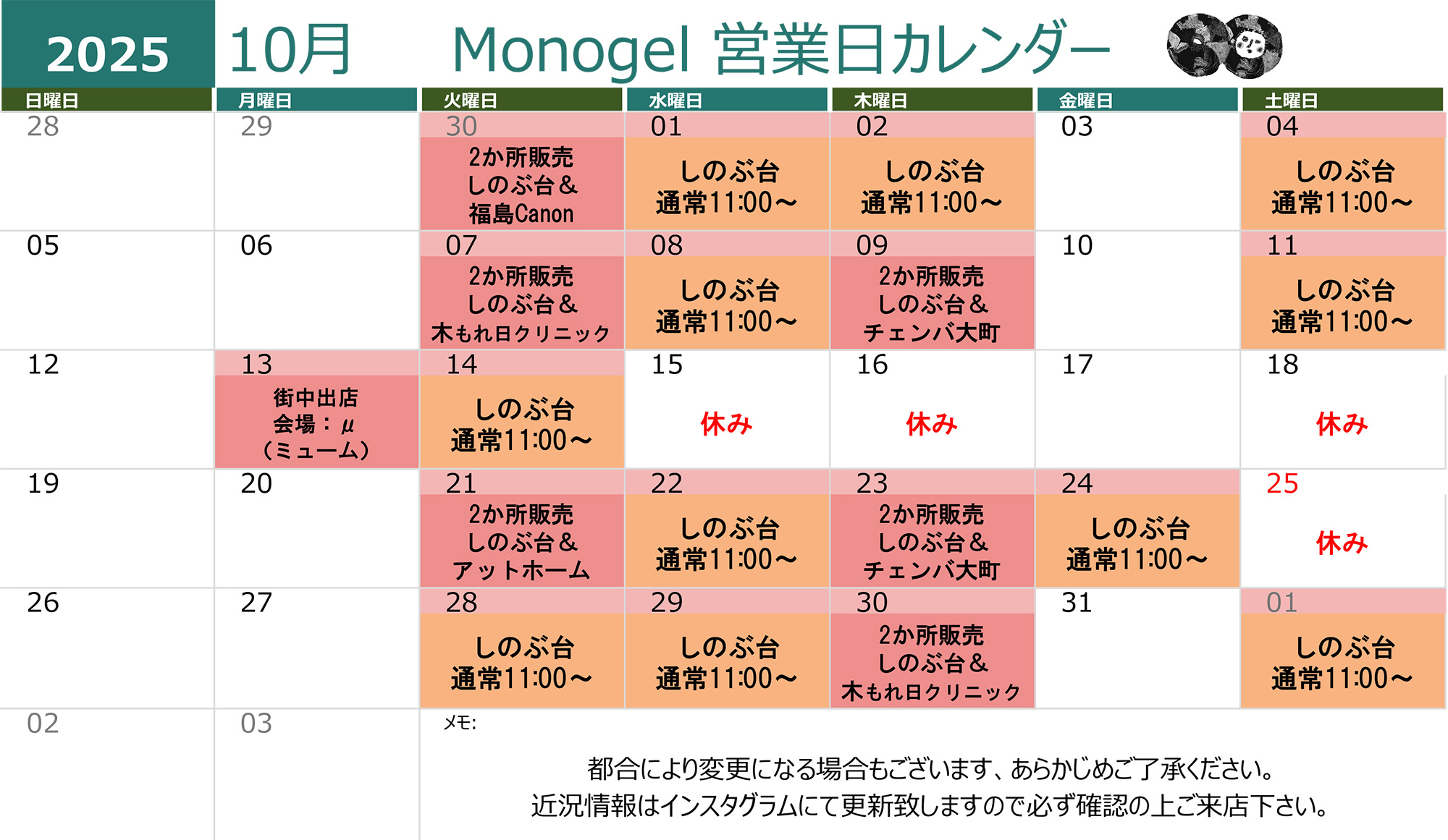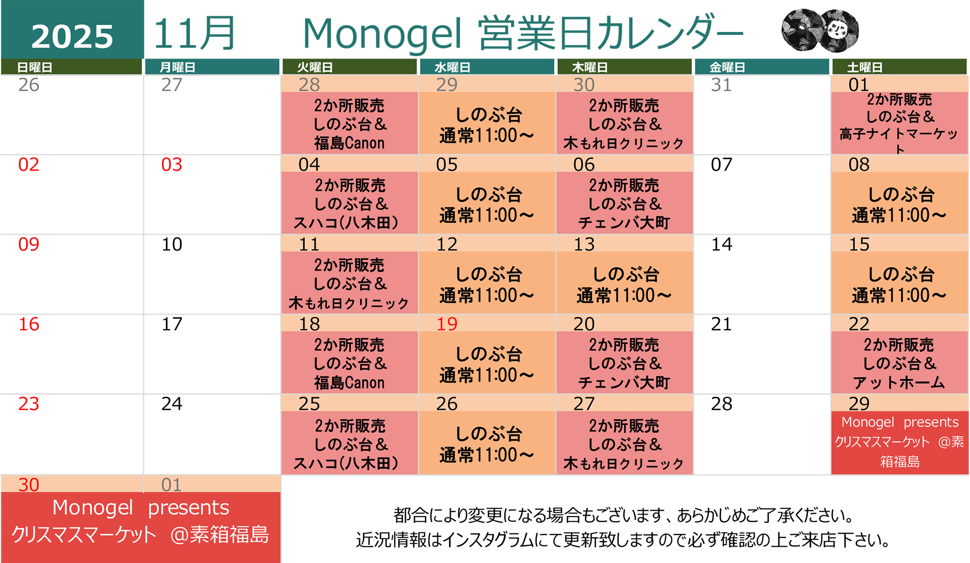 - 毎週火・水・木・土祝日やイベント出店等により休みの場合あり